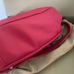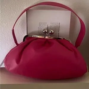 Vibrant pink clutch/shoulder bag with sleek silver clasp. Perfect for adding a pop of color. Medium size in nappa leather. 31 x13 x 21 cm. Brand new with tags.
