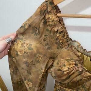 NWT Blu Pepper, Small Brown Floral Dress with Sheer Long Sleeves