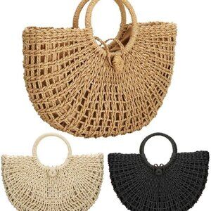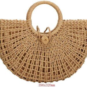 Features: This large, beautifully handwoven straw tote combines casual style with standout design. Rounded top handle, half-round shape, and lightweight feel make it ideal for beach days, shopping, parties, dates, or travel. The top drawstring/zipper closure keeps your goodies secure, and the roomy main compartment fits books, snacks, your purse, phone, or even an iPad. Plus a small inner pocket for cards or keys.