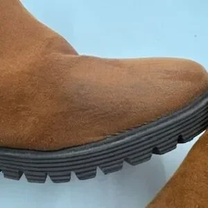 American Eagle Womens Cognac Brown Faux Suede Sherpa Lined Chelsea Boots Size 9
