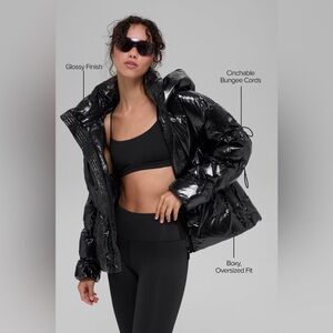 Chic and cozy puffer by ALO Yoga. Ideal for cold weather. Features a sleek design. ONLY WORN ONCE! No signs of wear and tear. Color is white, black jacket photos are just to show more of the design. Fits abit oversized but can cinch in with bungees.