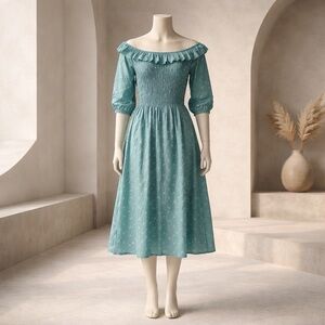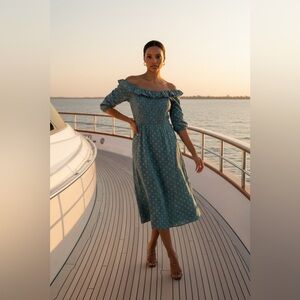 Destination 365 Clip Dot Off- the-Shoulder Midi Dress | Size Medium | NWT
