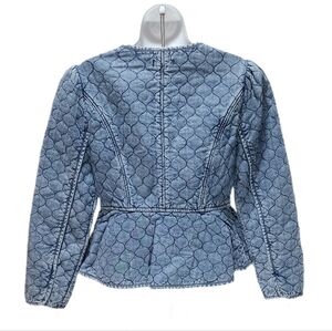 Democracy Quilted Denim Jacket Puff Long Sleeve Peplum Hem In Washed Mid Blue S.
