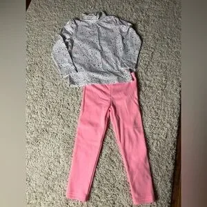 Adorable long sleeve top with star pattern and matching pink leggings. Perfect for a playful day.