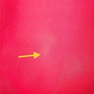 Excellent pre-owned condition. A small discoloration on the back, the pic makes it look more prominent then it actually is. Its pretty camouflaged by the shine if the material. Also, very tiny dit on the inside of one of the sleeves.