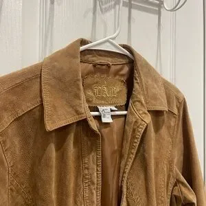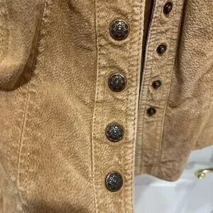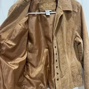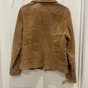 Women’s Live A Little leather tan jacket perfect for any occasion. Features a classic design with a comfortable fit. Please see photos for condition.