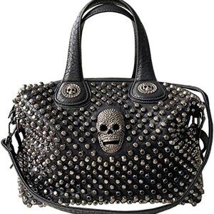 Women Faux Leather Skull Crossbody Bag Shoulder Handbag Purse with Top Handle