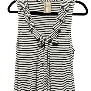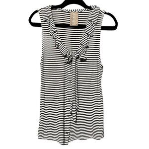 DOLAN LC | ANTHROPOLOGIE Flax Blend Stripe Ruffled Neckline Button Down Blouse