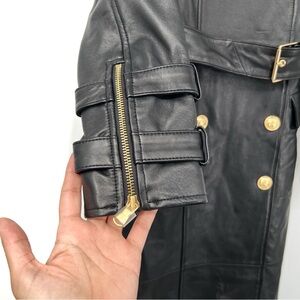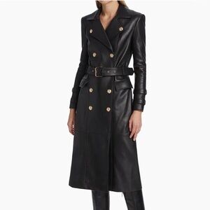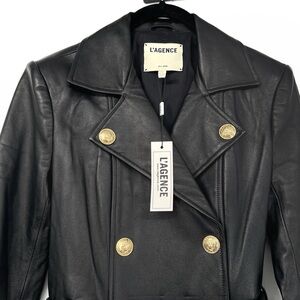 L'AGENCE NWT BLACK Celina Leather Black Double-Breasted Leather Coat XS