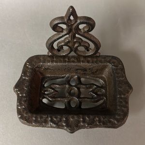 Cast iron footed note card tray or soap dish NWOT.