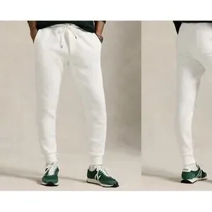 Polo Ralph Lauren Double Knit Jogger Pant Mens Medium Cream Pony Logo Athleisure