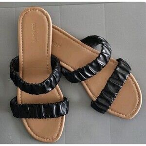 Old Navy Double Black Strapped Faux Leather Ruched Sandals Size 10