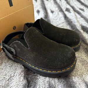 Lightly worn (only a few times) black suede Dr. Martens Zebzag suede shoes. Perfect for any occasion, they offer both comfort and sophistication.