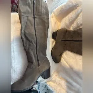 Elevate your style with these chic Lane Bryant knee-high boots. Perfect for any occasion and all outfits. They feature space for wide calves and a comfortable block heel. Beautiful taupe color is a great neutral to pair with most outfits. These boots have been worn maybe twice for indoor events. They are practically new.