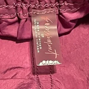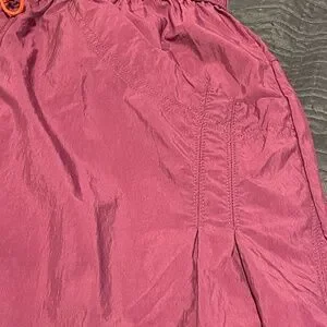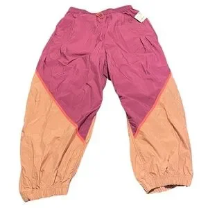 New with tags Deep Mulberry Mauve Combo Relaxed Fit Designed to fit slightly loose without being oversized or baggy. Durable Fabrication Reinforced woven fabrication designed to be more resistant to tearing and ripping. Forever free, these slouchy nylon pants feature a colorblock design for a playful touch to a grab-and-go pair. Fit: Mid-rise, slouchy, relaxed fit, ankle-length Features: Nylon fabrication, mocked elastic waistband with adjustable drawcord, slip pockets on front and back, cinched bottom hems.