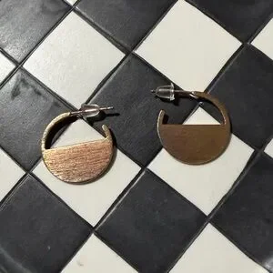 Stylish bronze half-moon metal earrings. Perfect for any occasion. Dime size.