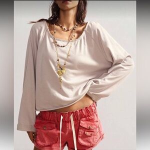 Relax in style with this casual off-shoulder top. Features a soft, cream color perfect for cozy days.