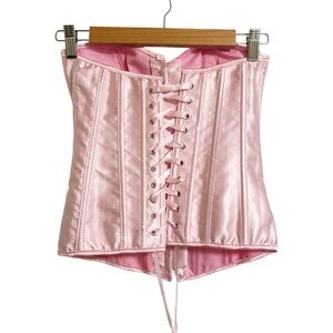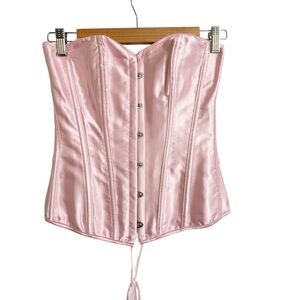 Baby Pink Satin Boned Corset Lace Up Back - Size Small