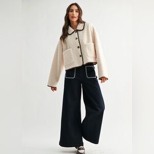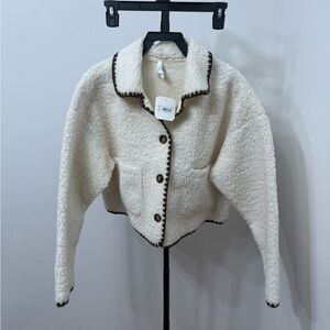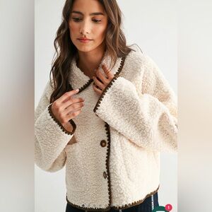 Altar'd State Cream Teddy Jacket with Brown Accents