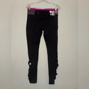 LULULEMON Speed Tight *Brushed Interlock Black Quilt Reflect Ruched Leg pants 8✨