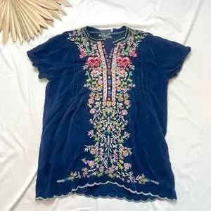 This Johnny Was Raina Blue Floral Embroidered Blouse Top is so cute and great for any occasion!
