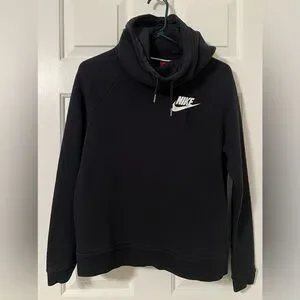 NIKE Women’s Black Funnel Neck Pocketed Hoodie Sweatshirt