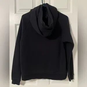Classic black hoodie with white Nike logo, funnel neck, side pockets. Soft fabric for everyday comfort. Ideal for casual wear or workouts. Black. Size S. Gently worn, good condition.