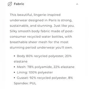 Saalt Leakproof French Cut High Waist Underwear for periods and light bladder leaks. Heavy absorbency - can absorb up to 4 tampons worth of liquid. Gusset extends all the way from the front waistband to the back waistband.