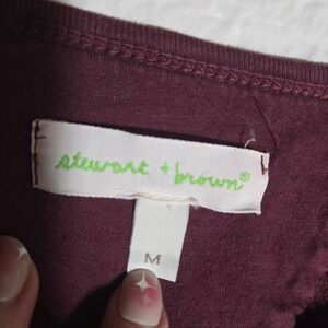 Stewart + Brown Top Medium Maroon Lace Ruffle Henley Waffle Knit Boho Minimalist