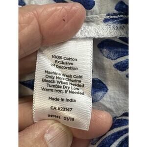 Talbots L Petite Cotton Blend Blue White Tunic Navy Blue Tassel Hem Boho India