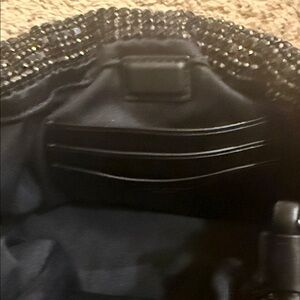 This elegant black beaded bag is perfect for any occasion. Its sleek design and shimmering beads add a touch of sophistication to your outfit. Ideal for evening events or a stylish day out.