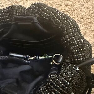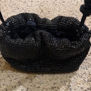 Tory Burch black crystal handbag. Removable shoulder strap, magnetic closure.