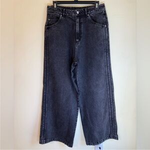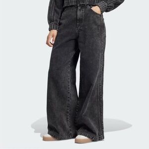 Stylish wide leg jeans by adidas. Charcoal color for a modern look. Comfortable and versatile.