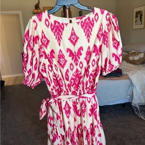 Flying Tomato Pink & Cream Ikat Tie Waist Mini Dress Size L