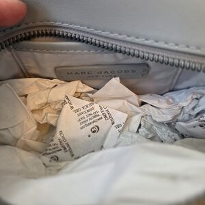 Elegant gray crossbody bag by Marc Jacobs. Features bold logo and detachable strap. Perfect for daily use.