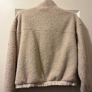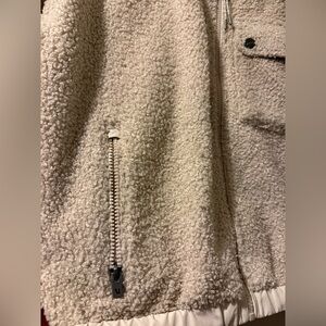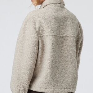 Stay cozy and stylish with this cream sherpa jacket. Perfect for layering, it offers warmth and comfort for any occasion.