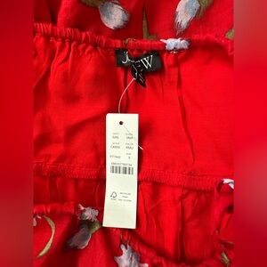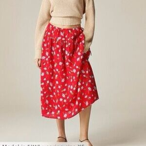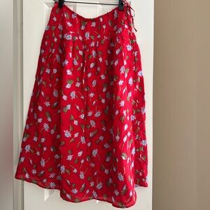 Brighten your wardrobe with this vibrant red floral skirt. Perfect for any occasion.