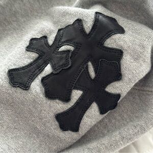 Chrome Hearts Triple Cross Paper Jam Mock Neck Grey Sweatshirt, Size XL
