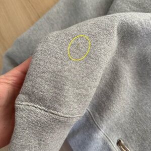 • stains on cuffs and two tiny stains on the back. See the last few photos. Minor pilling. Since I dry cleaned this, these remaining stains more than likely cannot be removed.