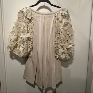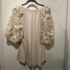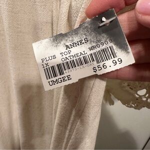 NEW Umgee 1X Cream Floral Lace Sleeve Blouse