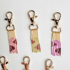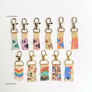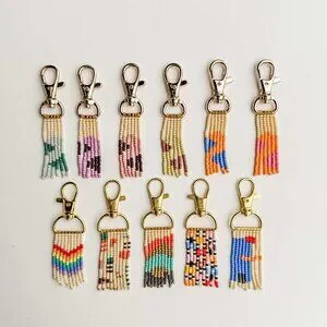 High quality keychains, glass seed beads and stringing material.