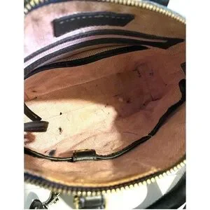 This elegant blue handbag is perfect for any occasion. Its sleek design and high-quality material make it a must-have accessory. Main compartment pockets at interior wall 1 zip closure fabric lining protective metal foot base lining have some stains exterior minor scratches hight 8.75” wide 11.75” depth 3” strap drop 29”adjustable The dimensions are based on approximately measurements before placing an order please check take a moment to view all photos using feature for a closer look