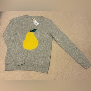 Stylish gray sweater with a bold yellow pear design. Ideal for a fun, casual look. Classy and Chic for Spring! A Pop of color to stand out! Full length sleeve