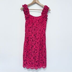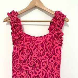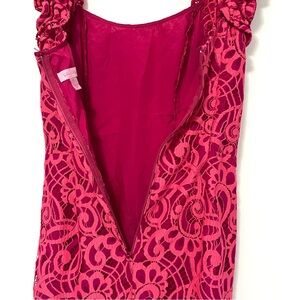Lilly Pulitzer Mara Hot Pink About Face Two Tone Scallop Lace Ruffle Dress sz 4