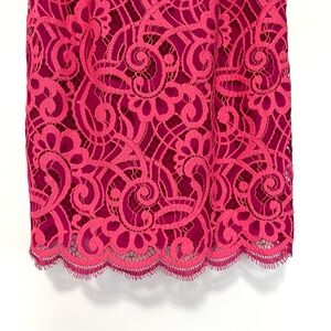 Keywords: Lilly Pulitzer dress, pink lace dress, party dress, cocktail dress, wedding guest dress, sleeveless dress, ruffle strap dress, shift mini dress, special occasion, spring summer dress, unique, elegant, Lilly Pulitzer, Lilly dress, pink lace dress, hot pink dress, fuchsia dress, lace overlay dress, floral lace dress, sleeveless lace dress, ruffle shoulder dress,short dress, cocktail party dress, graduation dress, bridal shower dress, bachelorette party dress, spring dress, summer dress, resort wear, vacation dress, date night dress, bodycon lace dress, fitted lace dress, scallop hem dress, preppy style, southern style, beach wedding guest dress, Palm Beach style, classic Lilly, designer lace dress, feminine dress, girly dress.