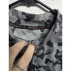 Spyder Active Womens Half Zip XL Black White Gray Cam Thumbholes Logo EUC 934