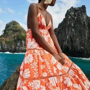 Farm Rio Orange Neon Jungle Maxi Dress