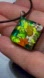 This is an authentic Italian Venetian Murano glass pendant bearing the stamp on the back. It measures .75" and sports a variety of colors - shades of green, silver and orange. A beautiful pendant for Murano glass lovers!
