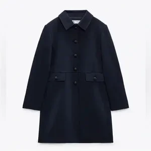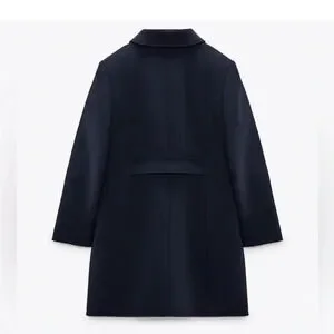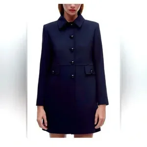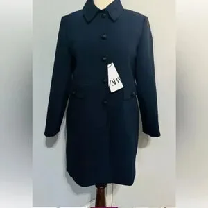 Zara Navy Blue Luxury Lapel Collar Long Sleeves Short Pocket Coat Medium NWT