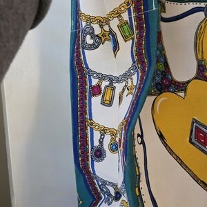 Brighton tote with bold LOVE design featuring a yellow heart and teal handles. Definitely will add fun and flair to your outfit!